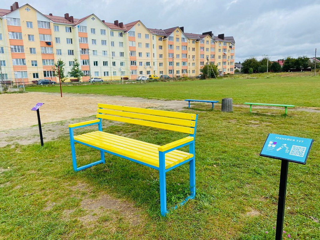 На майданчику в Агрономічному облаштовано турнік, бруси, шведську стінку, координаційну лінію, лавки, і, найголовніше – обладнано місце для занять фізичними вправами для всієї родини.