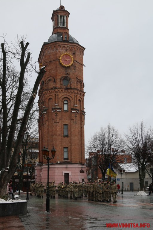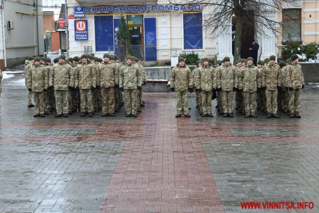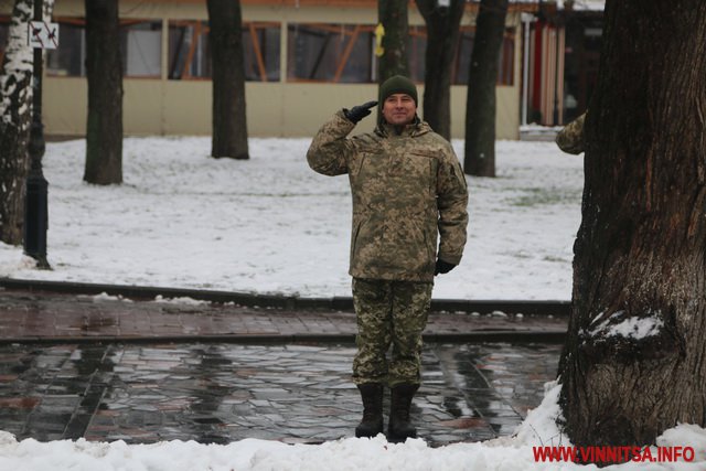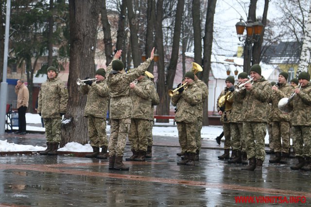 Під зимовим дощем військові віддали честь у супроводі оркестру.