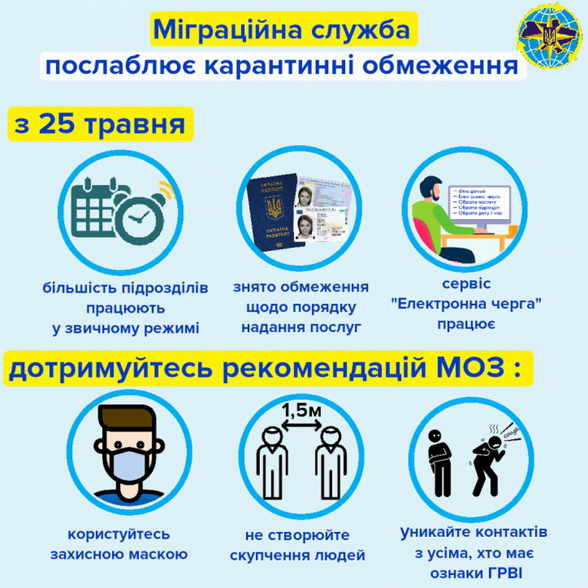 З 25 травня, відповідно до рішення Уряду щодо послаблення карантинних обмежень, Державна міграційна служба України відновила частину своїх функцій в тих областях, де епідеміологічна ситуація це дозволяє. В тому числі, і на Вінниччині. Відтепер громадяни можуть оформити собі паспорти або скористатися будь-якою іншою послугою, яку надає служба. Наразі обмеження в роботі підрозділів Міграційної служби збереглися лише у Волинській, Закарпатській, Рівненській та Чернівецькій областях.