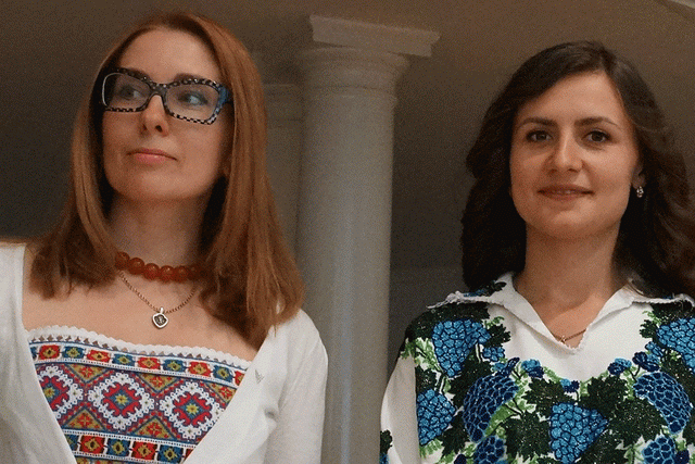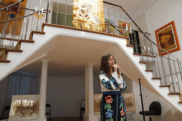 В Париже на открытии проекта своим удивительным голосом порадовала присутствующих черновицкая вокалистка Слава Дерда (на фото - справа). Красавица исполнила вокальные произведения Николая Лисенко на слова Тараса Шевченко, а также легендарные украинские народные песни