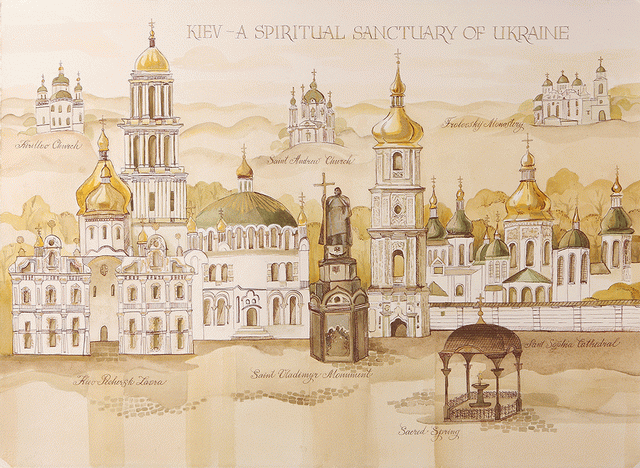 Тему единства Украины и ее исторических связей Анатолий Гайструк раскрыл в графических работах с изображениями Киева (на фото), Винницы, Одессы, Львова, Рима и Парижа. Они входят в графический цикл «Гармония города», который постоянно пополняется новыми роботами. Работы содержат изображение выдающихся сакральных и светских сооружений прошлого и современности. Такой подход дает возможность познакомиться не только с многовековой историей украинских и европейских городов, но и проследить, как менялось их лицо.