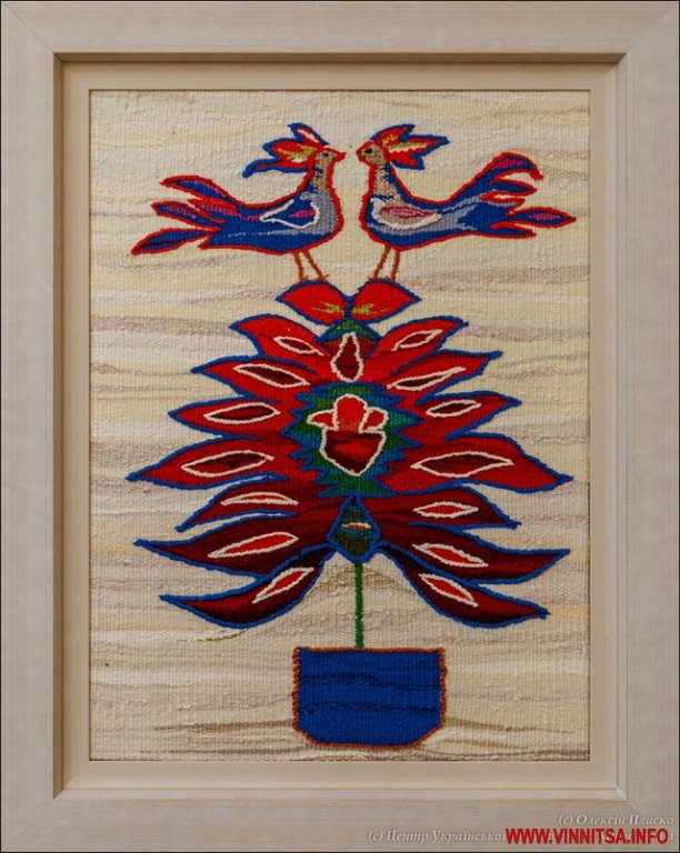 - Среди изображений на гобеленах Анатолия Гайструка преобладает мотив дерева жизни, - отмечает искусствовед Оксана Несторович. - Это, в первую очередь, одноименный диптих (на фото), выполненный в цветах украинского и французского флагов, и близкие к нему «Співуче слово поета» и «Вишиванка долі». В Украине этот знак-символ находим на старинной одежде, рушниках и писанках в виде цветущего растения в вазоне. Дерево жизни выступает моделью Вселенной, а также своеобразной дорогой, мостом между мирами, образом плодородия, знаком рода и семьи. У Анатолия Гайструка это – символ шевченковской Украины, которую поэт видел как большую семью, «сім’ю вольну, нову».