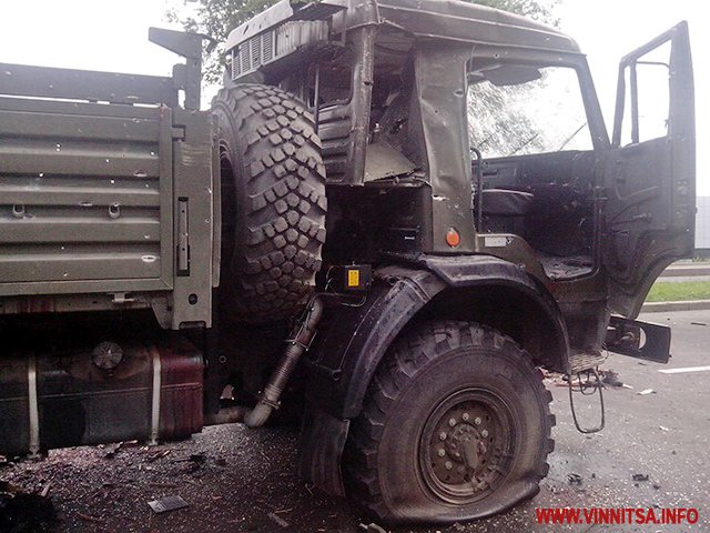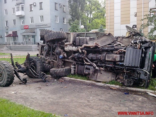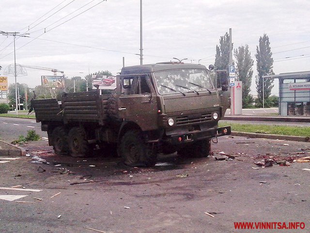 "Камазов было два. Один взорванный стоит на улице Взлетной. Второй лежит на Киевском проспекте возле детской больницы", - написал он.