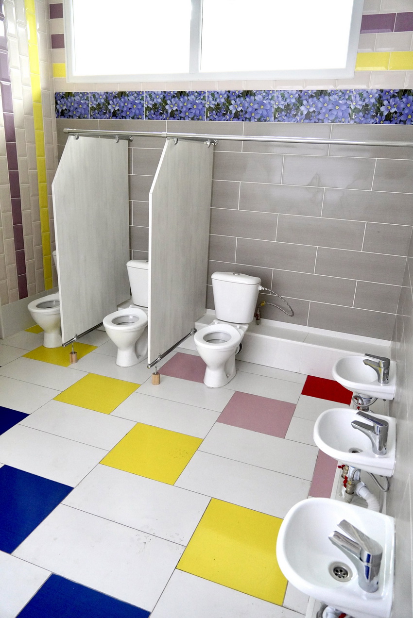 Біля дитсадка облаштували дитячі майданчики, а всередині приміщення - тепла підлога на всьому першому поверсі, яскраві меблі для дітей в групі та зручні санвузли.