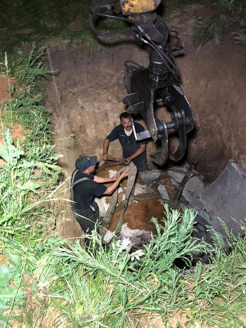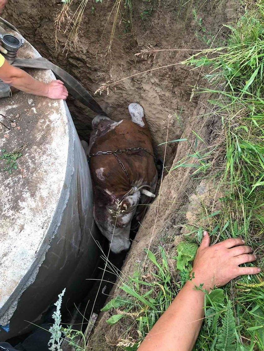 Ввечері 15 червня у Гайсинському районі, в селі Бережне, рятувальники діставали корову, яка впала у каналізаційну яму. Тварина знаходилася на глибині 4 метри. Її витягували за допомогою маніпулятора, пожежних рукавів та мотузки.