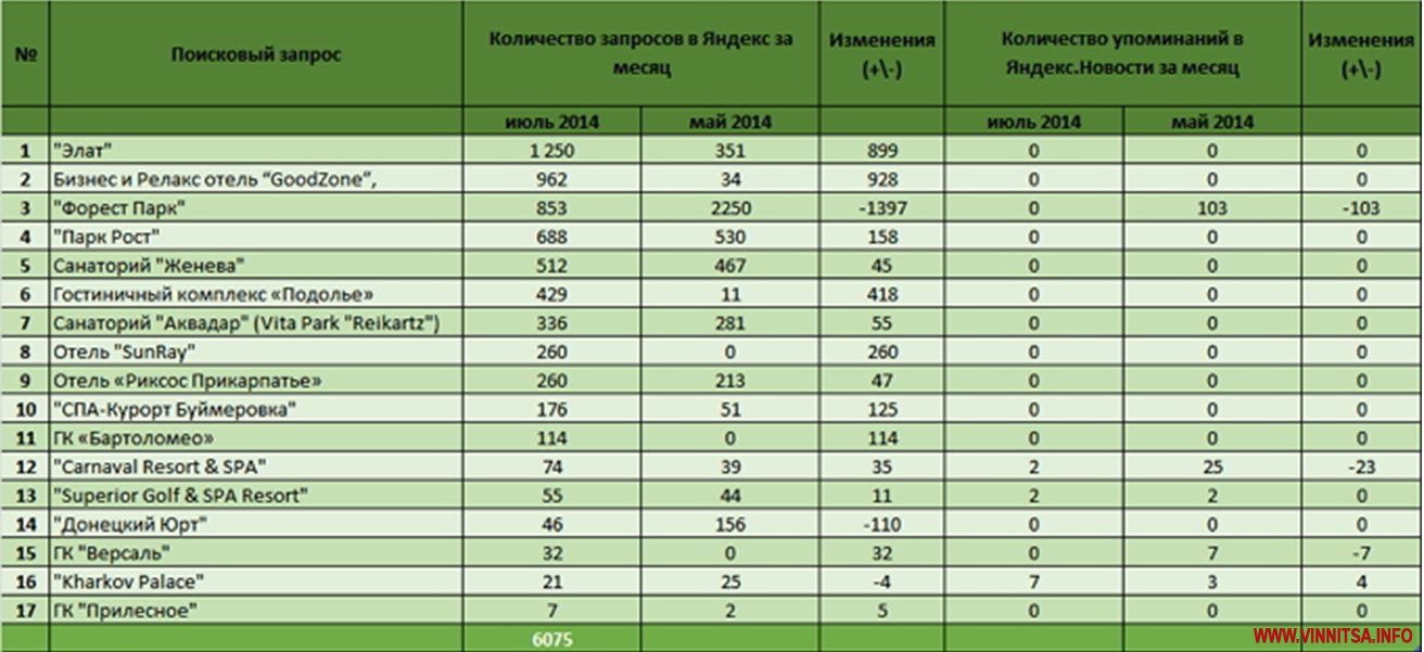 Аутсайдерами рейтинга стали туристические комплексы: "Carnaval Resort & SPA", "Superior Golf & SPA Resort", "Донецкий Юрт", ГК "Версаль", "Kharkov Palace" – 21; ГК "Прилесное".