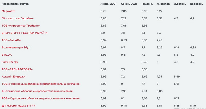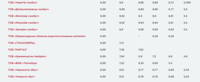 Станом на ранок 27 січня понад 50 газопостачальних компаній оприлюднили свої ціни на лютий. Згідно з рішенням уряду, вони не мали перевищувати 6,99 грн за кубометр. Однак деякі постачальники скористалися правом встановити навіть нижчу ціну, таких компаній сім.
