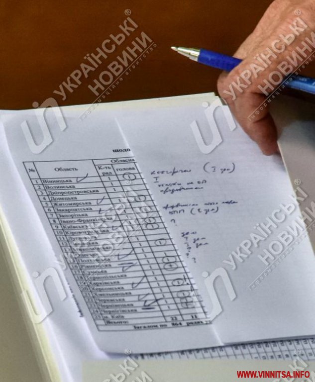 При цьому перед І. Кириленком лежала табличка з обведеними «одиницями» в графі «Голова», навпроти назв 10 областей, серед яких і Вінницька.