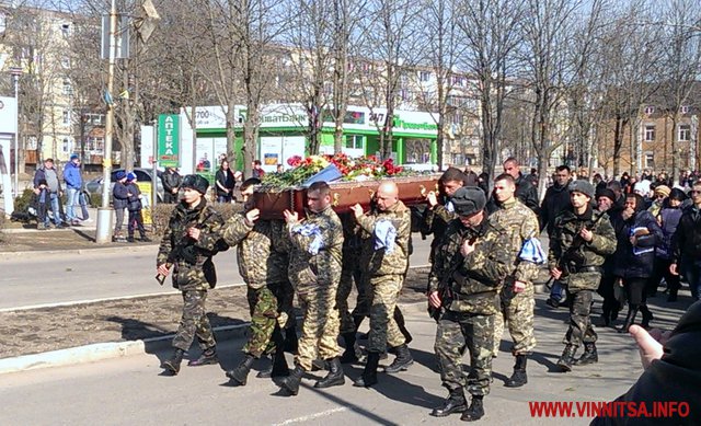 8 березня сотні ладижитнців вийшли на центральну площу, щоб провести в останню путь воїна-земляка Віталія Химича, розвідника 128 гірсько-піхотної бригади, який загинув під Дебальцевим.