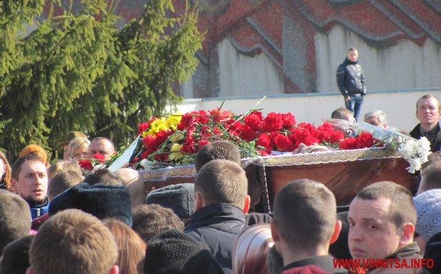 О 10 годині, жалобна процесія рушила від під'їзду будинку де мешкав Віталій на центральну площу. Труну із тілом героя, ладижинці, яких на площі на той час уже зібралось близько тисячі, зустрічали навколішки та зі сльозами.