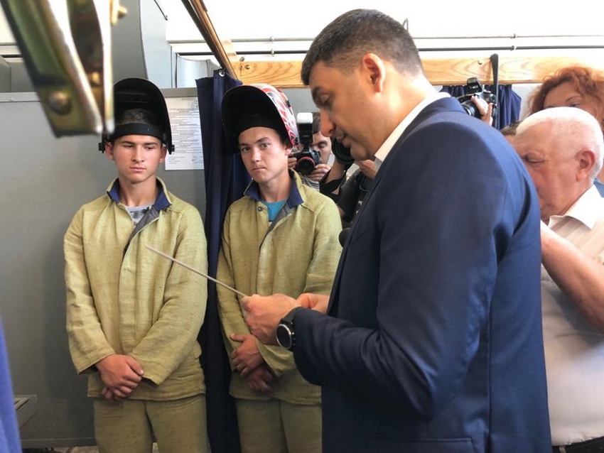 Під час ознайомлення з матеріальною базою навчального центру, Володимир Борисович, поцікавився, які електроди використовують учні і пригадав, що такі ж були в 1992 році. Саме в ті роки прем’єр міністр, працював слюсарем на МП «Школяр». Тоді йому було 14 років.