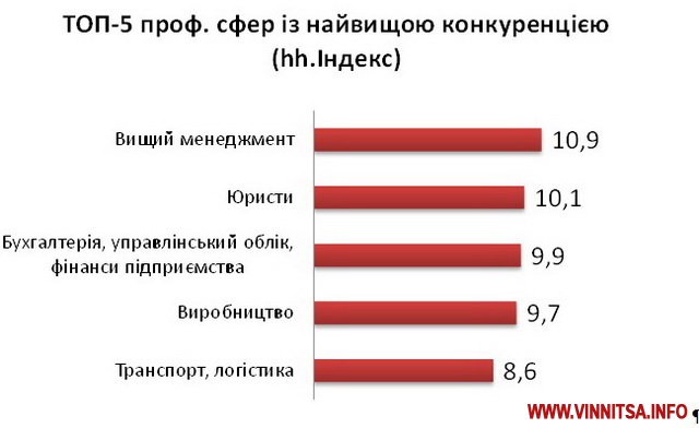 У лютому показник конкуренції на ринку праці збільшився. Якщо в січні на одне робоче місце претендувало майже 6 пошукачів, то в лютому конкуренція складала вже більше 6 кандидатів на вакансію. Найбільша конкуренція на ринку праці спостерігається і у Вінницькій області.