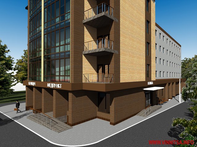Будівля по вул. Пирогова, 161а, яку планують добудувати та переобладнати під житло для тимчасово переміщених осіб буде з приміщеннями для амбулаторії сімейного лікаря, поштового відділення та дільничного інспектора поліції.
