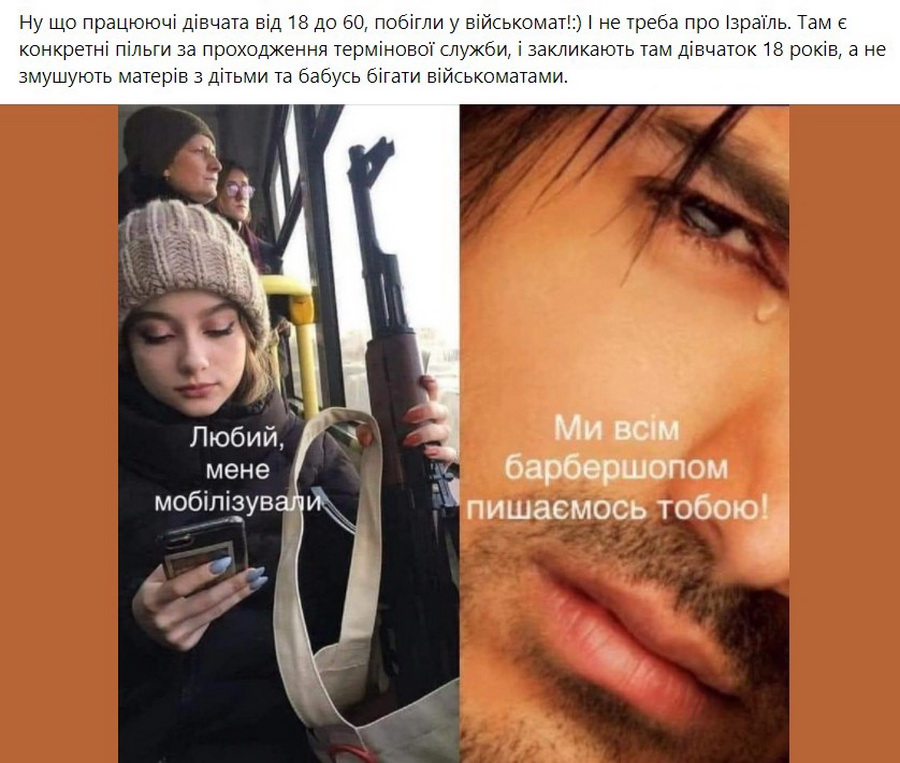У соціальних мережах уже почали публікувати меми та жарти щодо військовозобов’язаних жінок. Ми зібрали для вас кілька мемів.