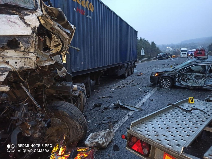 За попередньою інформацією правоохоронців, 28-річний водій лафета, який на причепі перевозив два автомобіля, виїхав на зустрічну смугу руху, де зіткнувся з вантажівкою. Водій евакуатора та його 58-річний пасажир від отриманих травм загинули на місці.