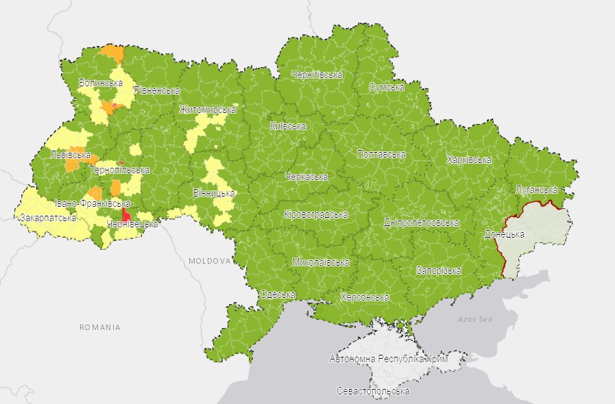 За інформацією МОЗ, до «червоної зони» відносяться: Луцьк, Тернопіль та Кіцманський район Чернівецької області.