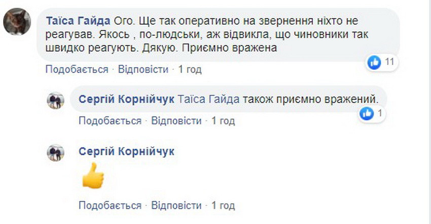 В коментарях до публікації на сторінці голови ОДА громадяни відмічають оперативність, з якою очільник облдержадміністрації відреагував на інформацію. Серед коментаторів – і авторка інформаційного допису про вимагання коштів за медогляд в школах Мурованокуриловецького району Таїса Гайда.