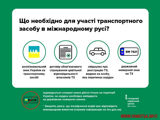 Водіям слід пам'ятати, що індивідуальні номерні знаки транспортних засобів дійсні лише на території України, за кордон необхідно виїжджати на державних номерних знаках.