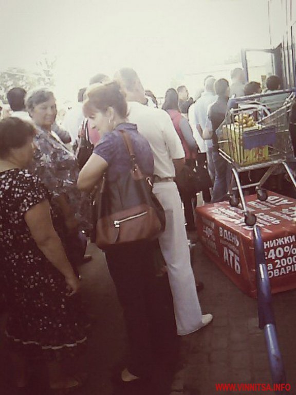 20 вересня у Вінниці аби потрапити до супермаркету «АТБ» вінничани ставали у величезні черги, щоб прикупити продукти зі знижкою, яку обіцяла компанія в рекламній промоції до Дня народження торгової марки.