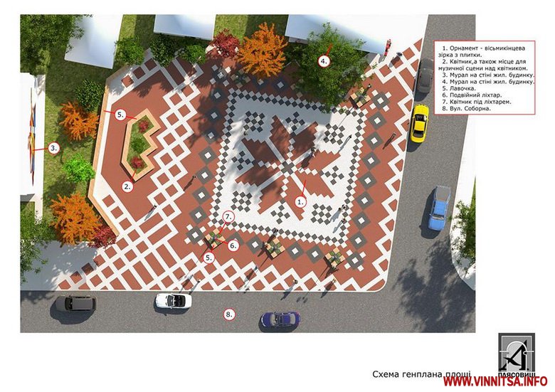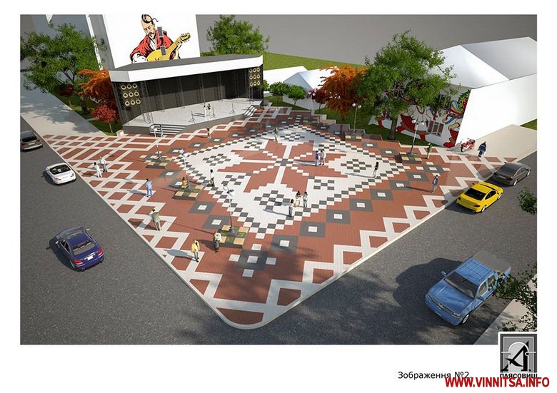 Площа матиме вигляд орнаменту Подільського регіону України з восьмикутною зіркою, яка є оберегом від зла та негативу.