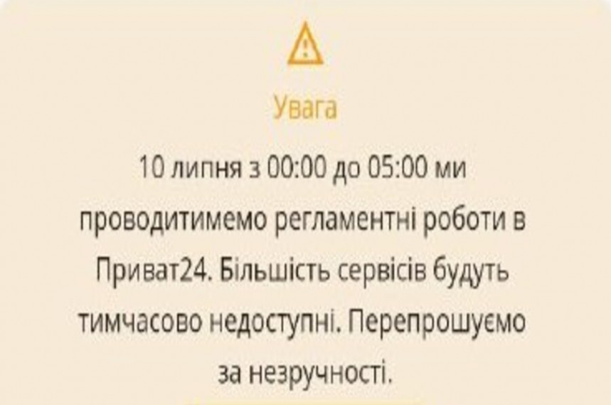 «У цей час сервіси будуть тимчасово недоступні як в додатку, так і у web-версії Приват24.