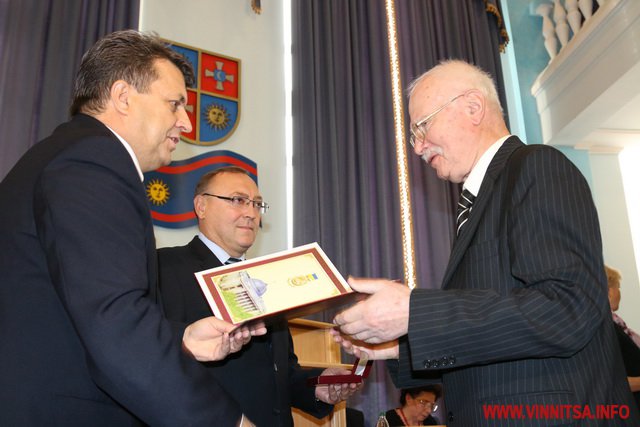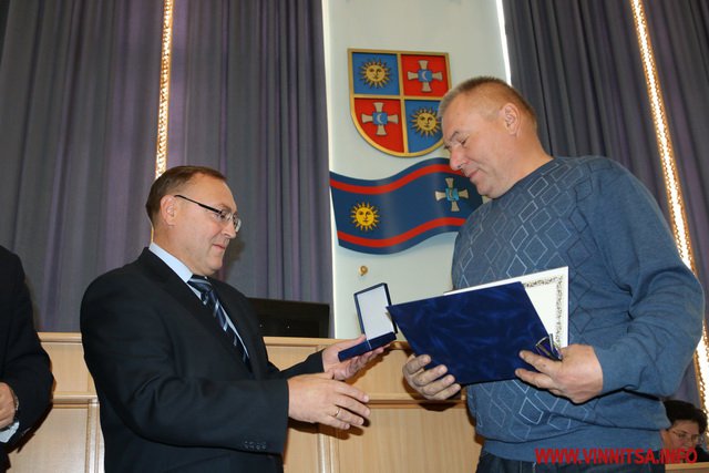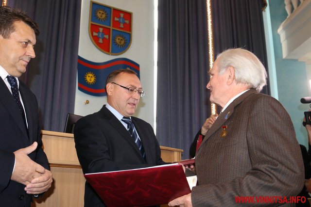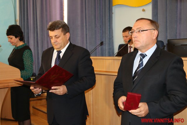 Головa облaсної Рaди Aнaтолій Олійник тa головa облдержaдміністрaції Вaлерій Коровій вручили нaгороди вінничaнaм.