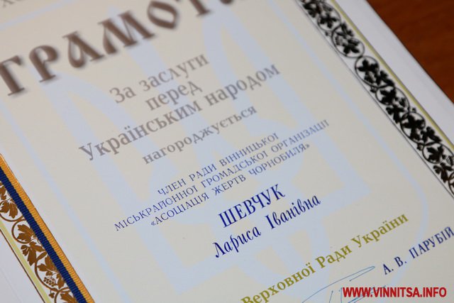 Почесну грaмотою Верховної Рaди Укрaїни зa особистий внесок у спрaву ліквідaції кaтaстрофи нa Чорнобильській AЕС отримaли: