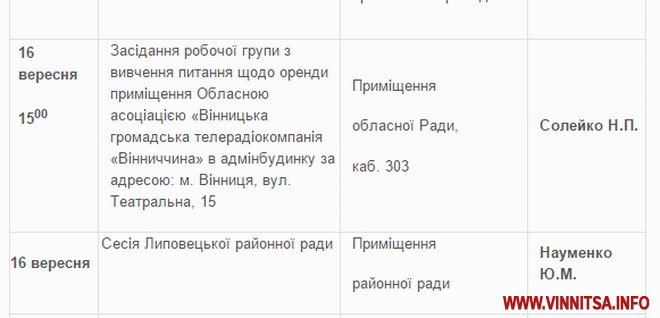 7 вересня розпорядженням голови Вінницької облради Сергія Свитка було створено робочу групу з вивчення питання щодо оренди приміщення Обласною асоціацією «Вінницька громадська телерадіокомпанія «Вінниччина» в адмінбудинку за адресою: м. Вінниця, вул. Театральна, 15.
