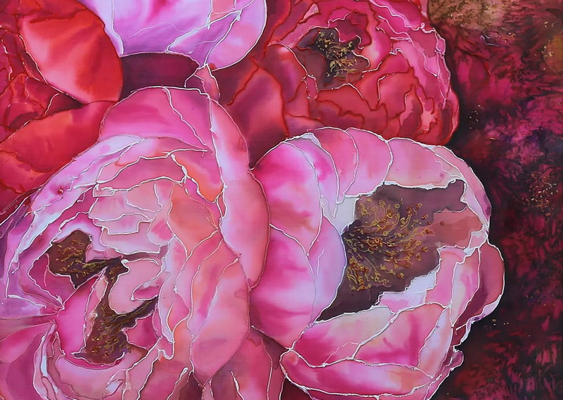 Обидві картини, які тепер може побачити вся Європа, мають назву «Півонії», одна – виконана олією, друга - у стилі батик.