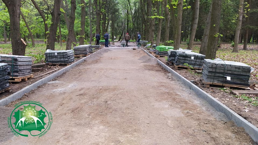 В парку Дружби народів облаштовують ще одну ділянку. Зона відпочинку матиме нові ліхтарі, лавки, а також оригінальну бруківку, викладену у формі орнаменту вишиванки. Це – реалізація одного з проектів «Бюджету громадських ініціатив».