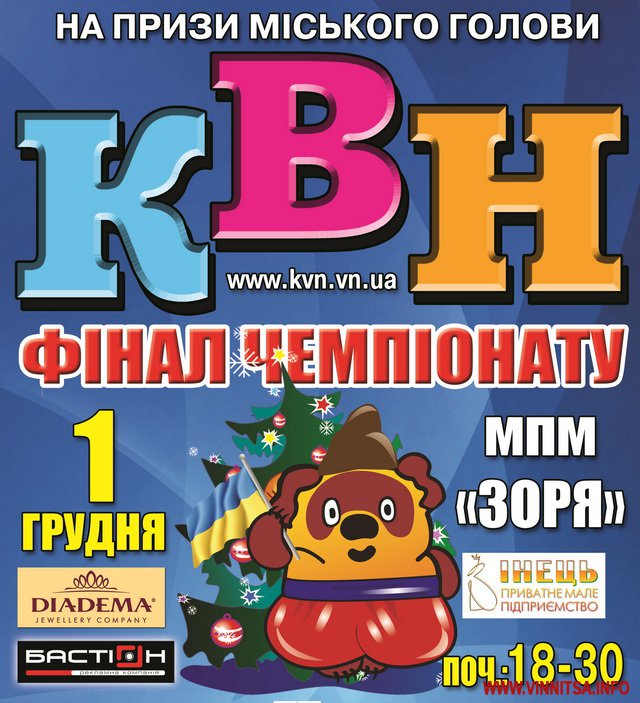 1 грудня у Вінниці в Палаці мистецтв «Зоря» відбудеться фінал чемпіонату КВН.