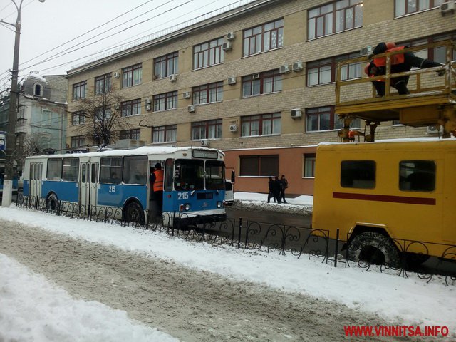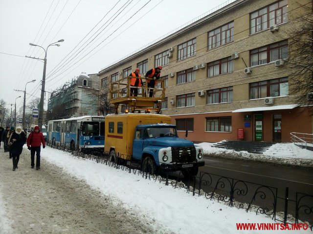 11 січня, близько 9 години ранку, в центрі Вінниці утворився затор. Причиною став поламаний тролейбус за маршрутом №15 «Вишенька-Муніципальний ринок». «Рогатий» зупинився на перехресті вулиць Соборної і Театральної.