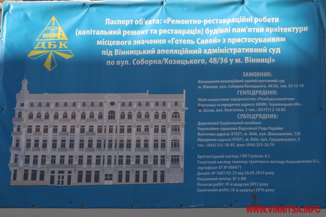 7 грудня у центрі Вінниці під час реставраційних робіт в пам’ятці архітектури готелю «Савой», підрядники через вікно п’ятого поверху будівлі вивантажували старі дерев’яні балки, які служили міжповерховим перекриттям.