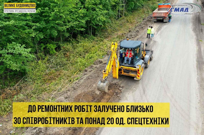 До ремонтних робіт на цьому відрізку залучено близько 30 співробітників та понад 20 одиниць дорожньо-будівельної спецтехніки.