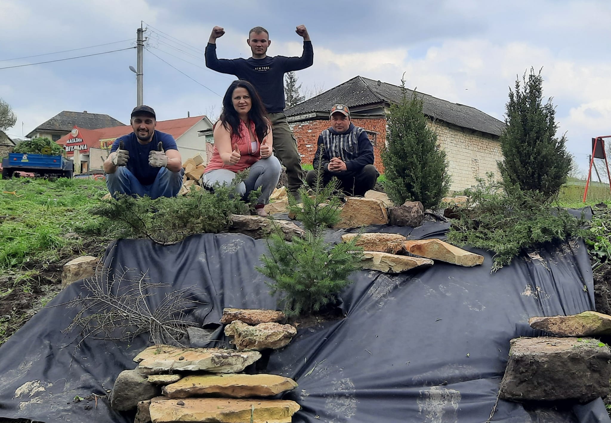 В центрі села місцеві жителі висадили 10 берізок, сосни, зробили зелений паркан з спіреї та створили альпійську гірку. Рослини людям надало комунальне підприємство. В подальших планах – скласти мур, досадити квітучих рослин, встановити лавочки та зробити доріжку для катання на роликах.