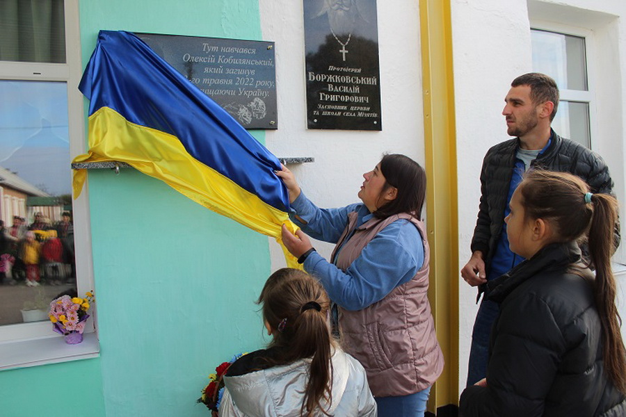 У селі Мізяків, що у Хмільницькому районі, відкрили меморіальну дошку на честь загиблого військового Олексія Кобилянського. Дошку встановили на фасаді школи, де навчався колись Олексій.