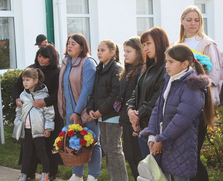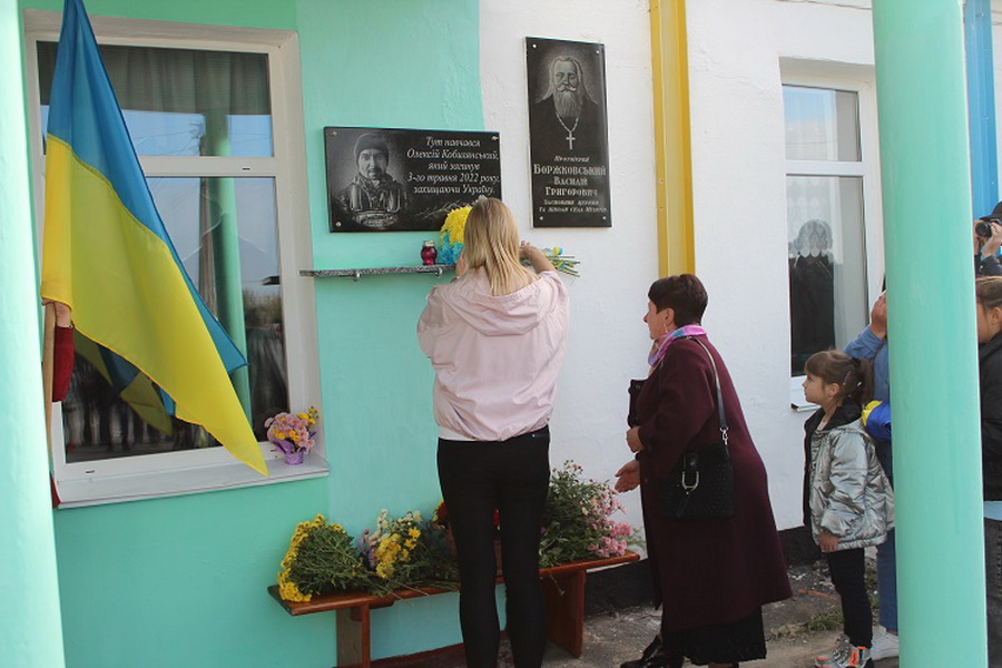 Право відкрити дошку було надано дружині загиблого солдата Оксані Кобилянській та їхнім донькам. На подвір’ї ліцею зібралося багато мешканців села.