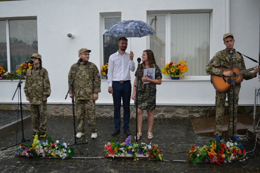 Під час урочистого відкриття пам’ятної дошки з вітальним словом виступив депутат обласної Ради, ініціатор відкриття меморіальної дошки Володимир Барцьось.