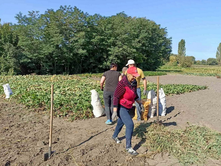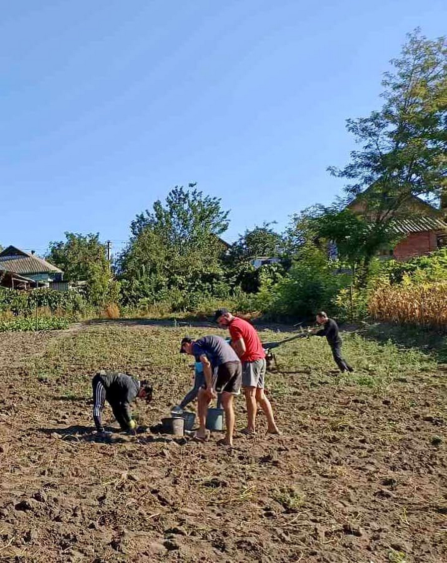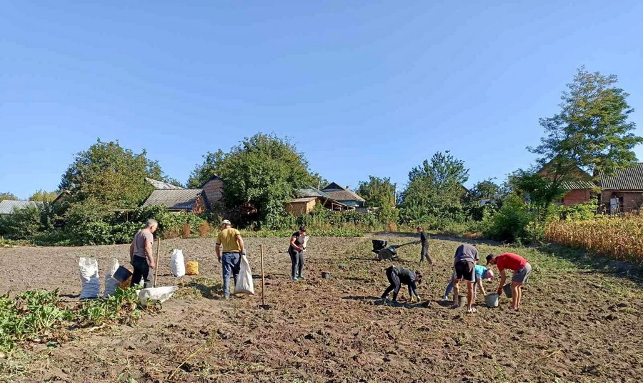 Протягом літа місцеві жителі разом із переселенцями обробляли територію, де посадили картоплю. Вони зібрали більше тонни картоплі і вирішили її передати на потреби ЗСУ.