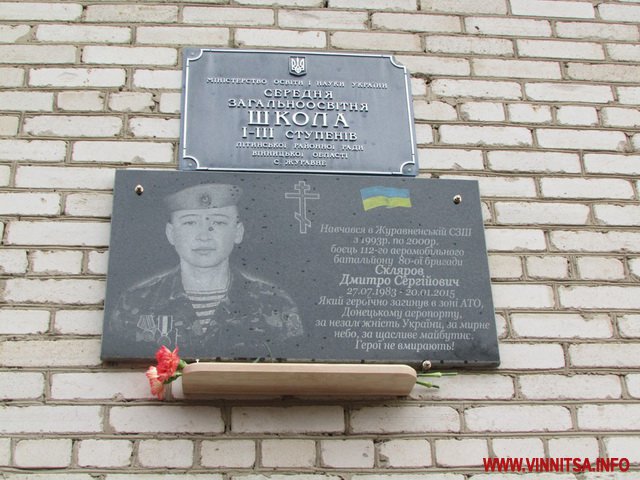 19 лютого на фасаді школи в селі Журавне, що на Вінниччині відкрили меморіальну дошку присвячену пам’яті загиблого героя - «кіборга» - Дмитра Склярова.