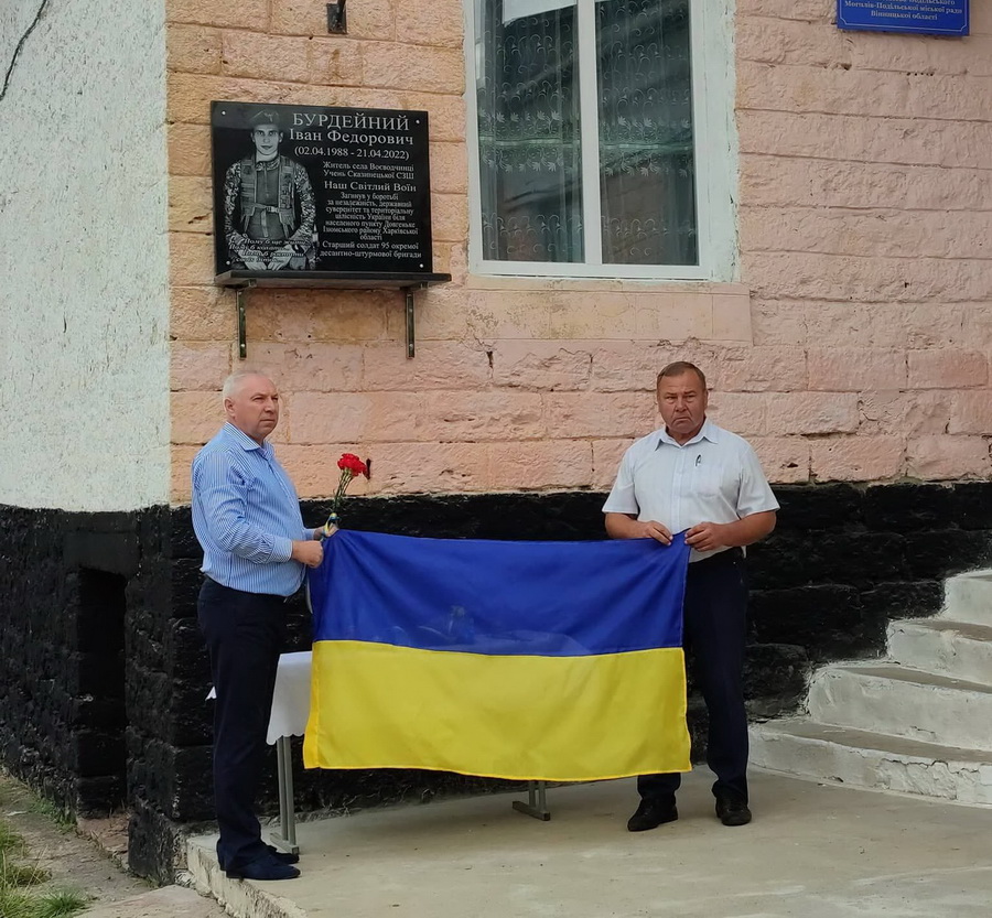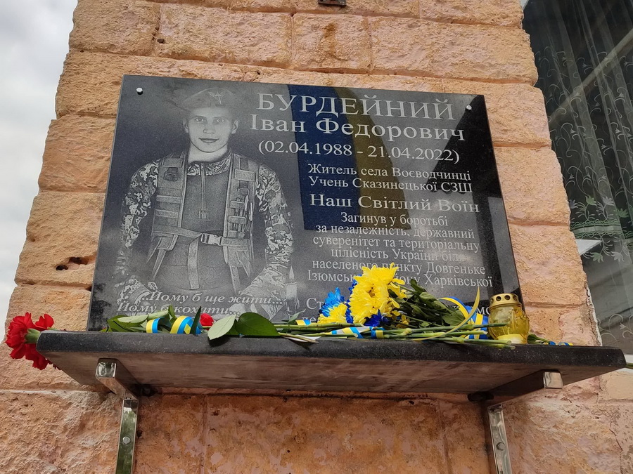Сьогодні, 1 вересня на фасаді будівлі Сказинецької школи відкрили меморіальну дошку Бурдейному Івану Федоровичу. Воїн народився 2 квітня 1988, а загинув 21 березня 2022 року, боронячи державний суверенітет та територіальну цілісність України. Іван ріс в селі Воєводчинці і ходив до Сказинецької школи.