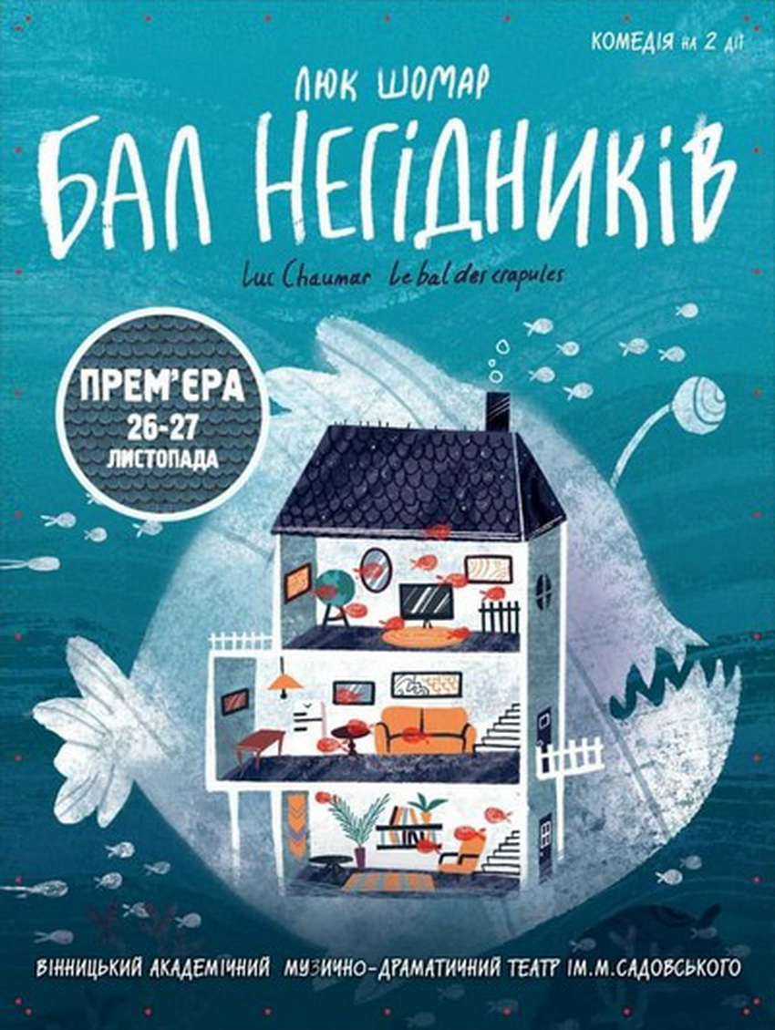 26-27 листопада о 19:00 у Вінницькому обласному академічному музично-драматичному театрі імені М. Садовського відбудеться прем'єрний показ комедії «Бал негідників» за п’єсою французького актора та популярного драматурга Люка Шомара.