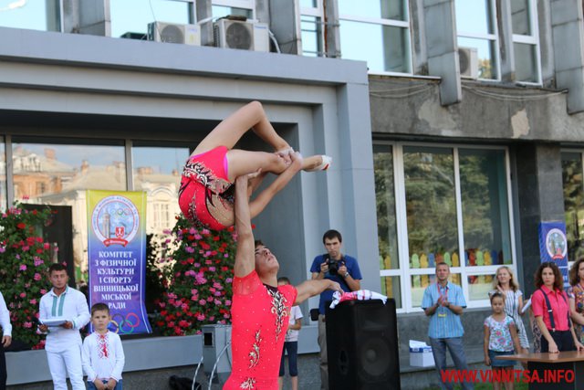 Перед міською радою вихованці спортивних шкіл захопили публіку яскравими акробатичними номерами.