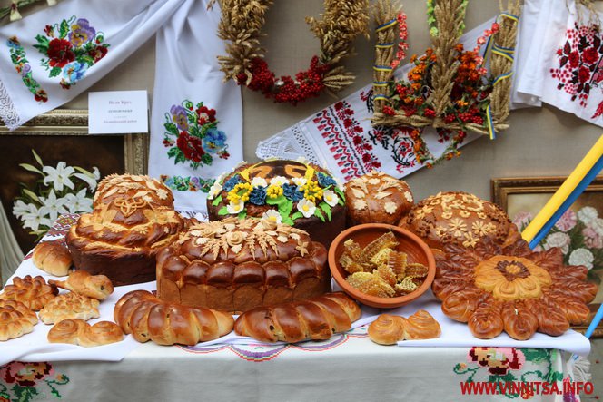 Свої роботи представили всі райони області. Городян дивують плетеними оберегами, ляльками-мотанками і духмяними короваями. Запальні музики розважають перехожих ритмами української польки.