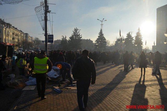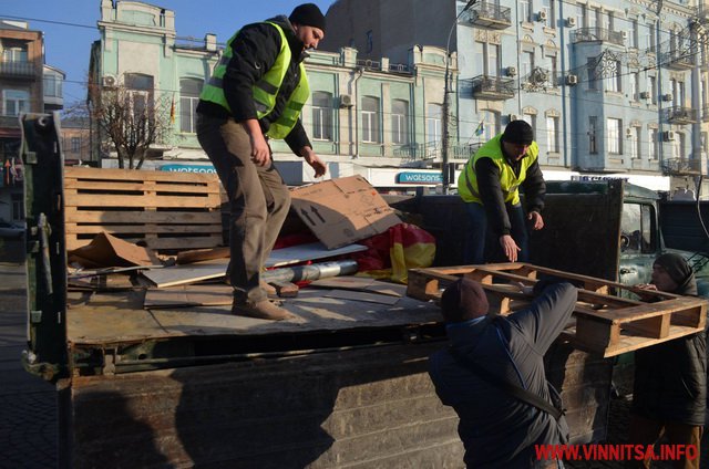 16 грудня у центрі Вінниці забрали намети так званого «тарифному майдану», замість якого встановили новорічну атрибутику, яка доповнює Резиденцію Діда Мороза. Хрести із футболками, на яких нанесено зображення загиблих захисників, зняли учасники АТО і перенесли їх на кладовище.