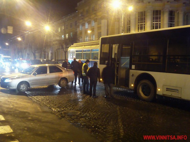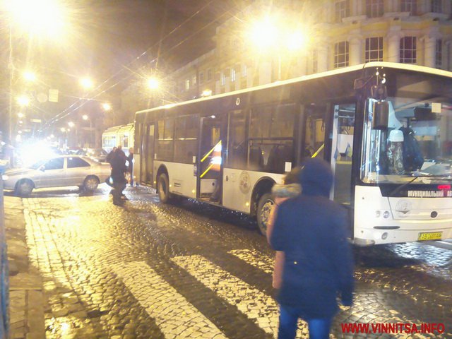 4 лютого близько 19 години у центрі Вінниці сталася ДТП. На перехресті вулиць Соборна і Архітектора Артинова стукнулися муніципальний автобус і легковик. На щастя, пошкодження виявилися незначними. На місце події одразу прибули представники Вінницької транспортної компанії і страховики.