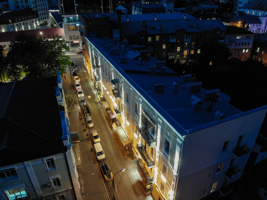 Останнім елементом проекту стало облаштування підсвітки фасаду та арки. Відтепер і вночі оновлена будівля буде ще однією окрасою центральної частини міста.