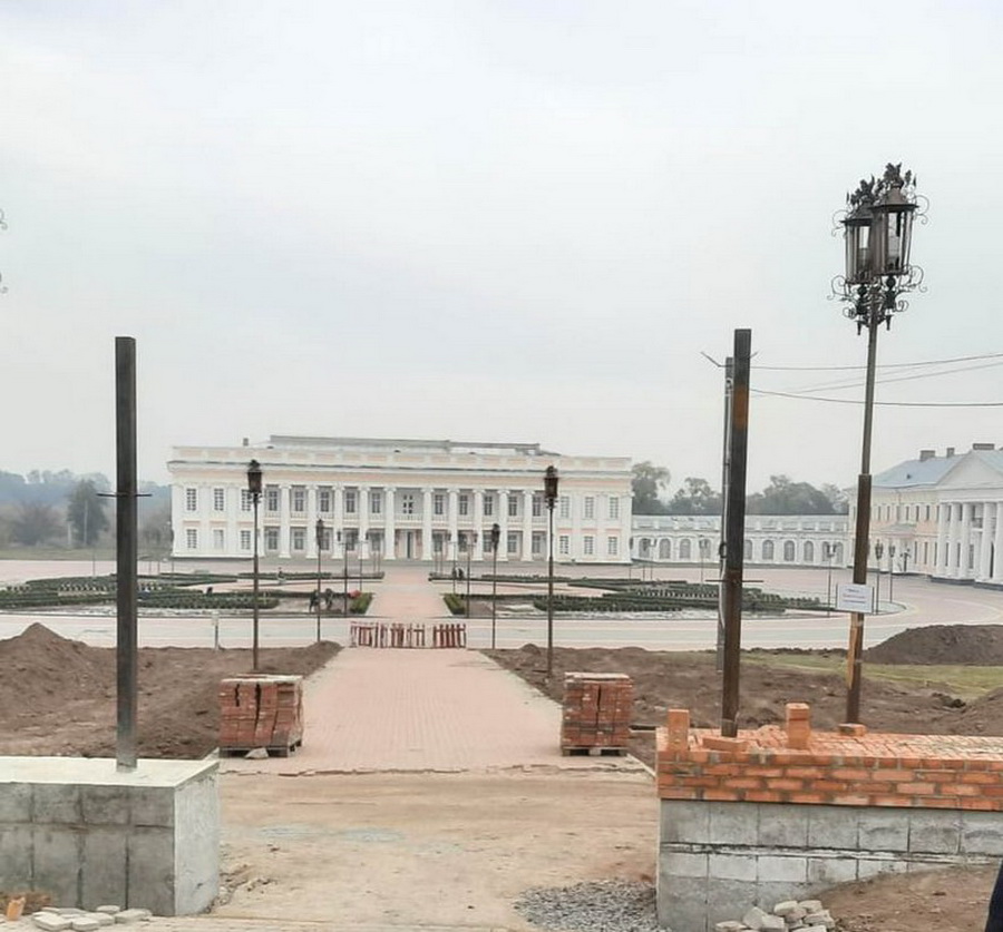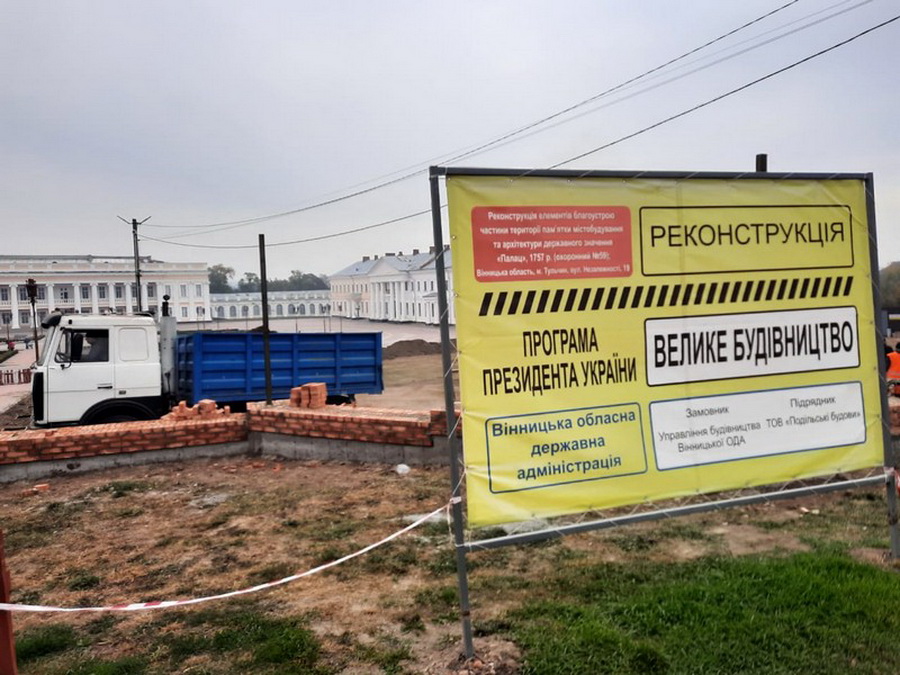 В Тульчині, що на Вінниччині, триває реконструкція території Палацу Потоцьких. Зараз там робітники будують фундамент для нової огорожі, а також висаджують на території ботанічні рослини.