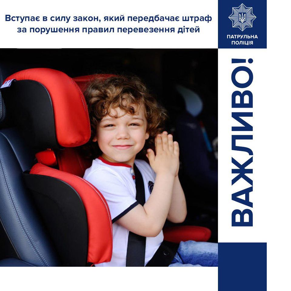 Від 20 листопада в Україні набирає чинності закон, який встановлює відповідальність за порушення правил перевезення дітей. Згідно із законопроектом №1150, за порушення правил перевезення дітей, тягне за собою штраф в розмірі 30 неоподатковувані мінімумів доходів громадян – 510 гривень, а за повторне правопорушення – 50 неоподаткованих мінімумів, тобто 850 гривень