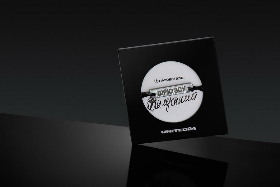 «Щоб підкреслити всю важливість цього збору, до Дня захисників і захисниць України ми зробили 1000 ексклюзивних браслетів з останньої довоєнної партії Азовсталі з написом «Вірю в ЗСУ». Cто браслетів власноруч підписав Головнокомандувач Валерій Залужний. Браслети не можна купити, а тільки виграти за донат від 5 грн на банку.